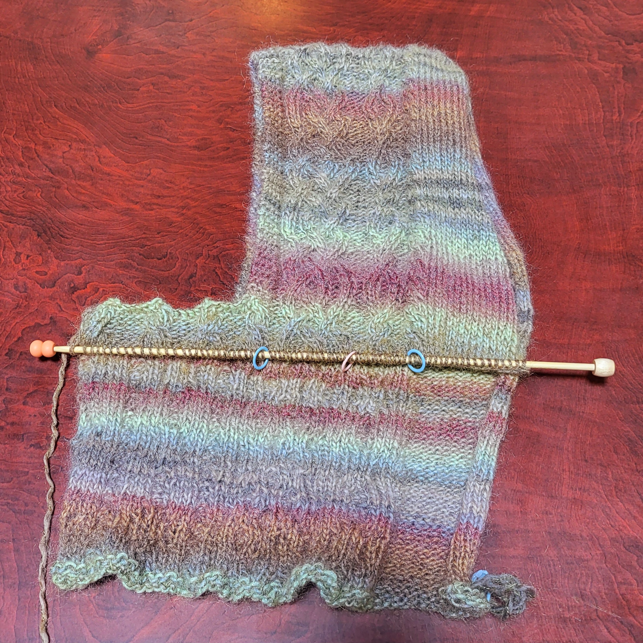 なんか穴できた箇所あるけど戻る自信ないから、編み終わってから修復(ごまかし)しよ…