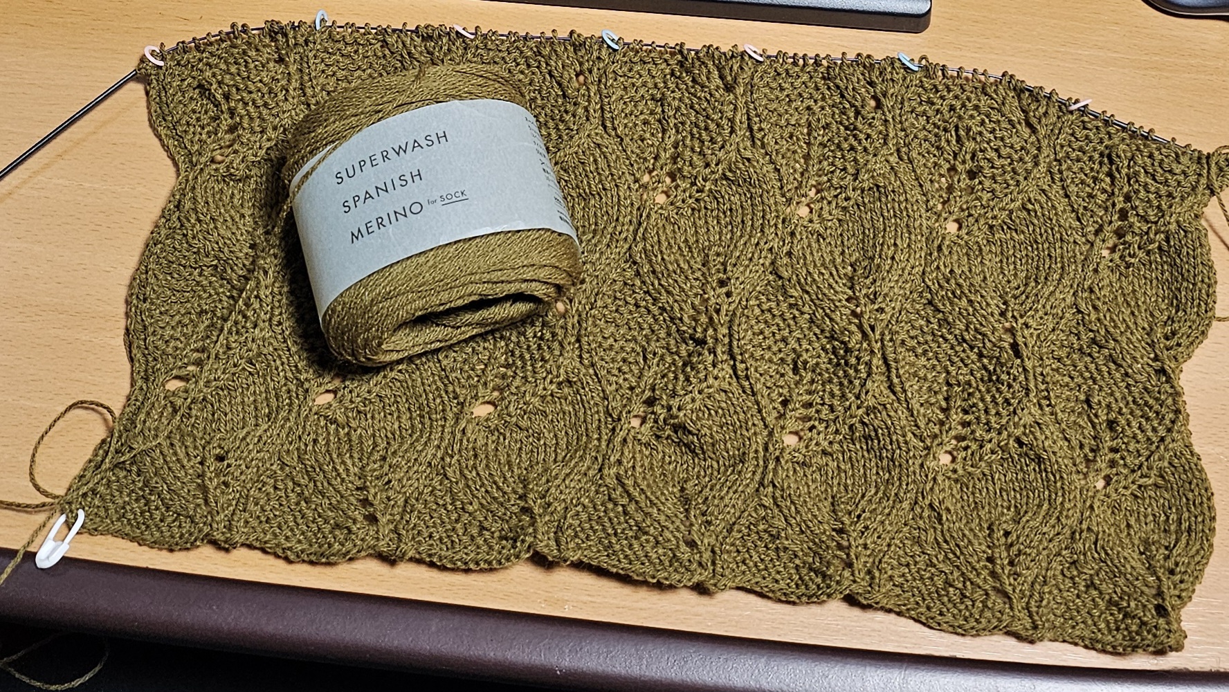 編み始めた頃は「レース編んでデスクの上に乗っけるんだぁ」とか言ってたんですが、編めば編むほど思ってたレースよりはニットになってきました。