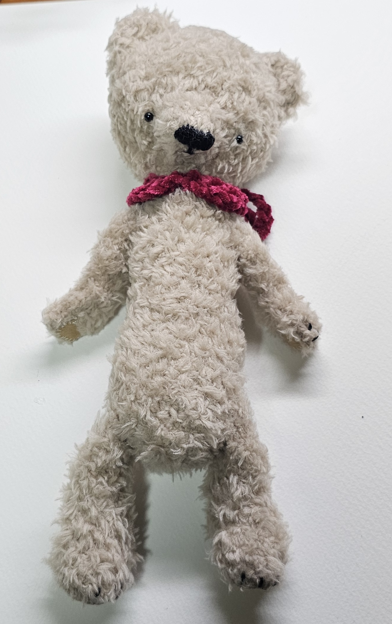 つくる フェリシモこう見えてかぎ針編みくったり愛着テディベアの、2 マシュー編む部分はすべて完成、合体完了のこりスエード(っぽい布)縫い付けと、目のみくったり、というかぐったりしてる 2024/10/15 Tue (1年以上前) No.1363 編集 削除