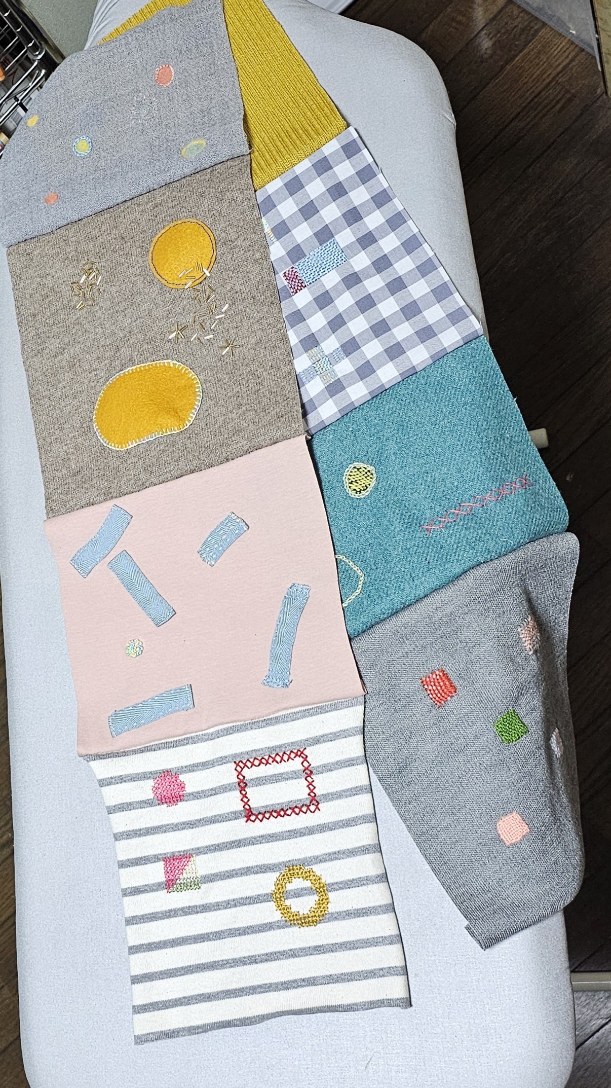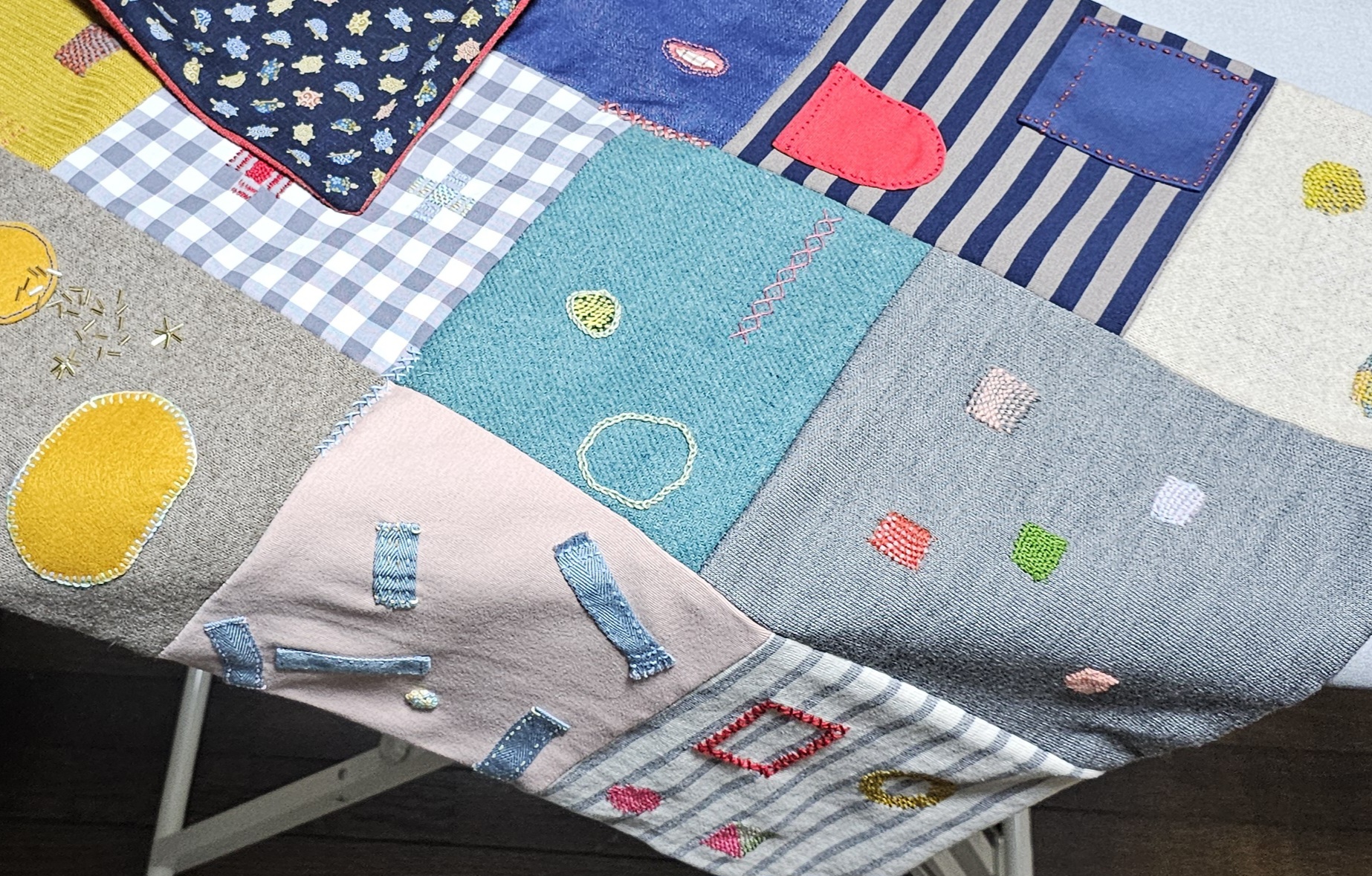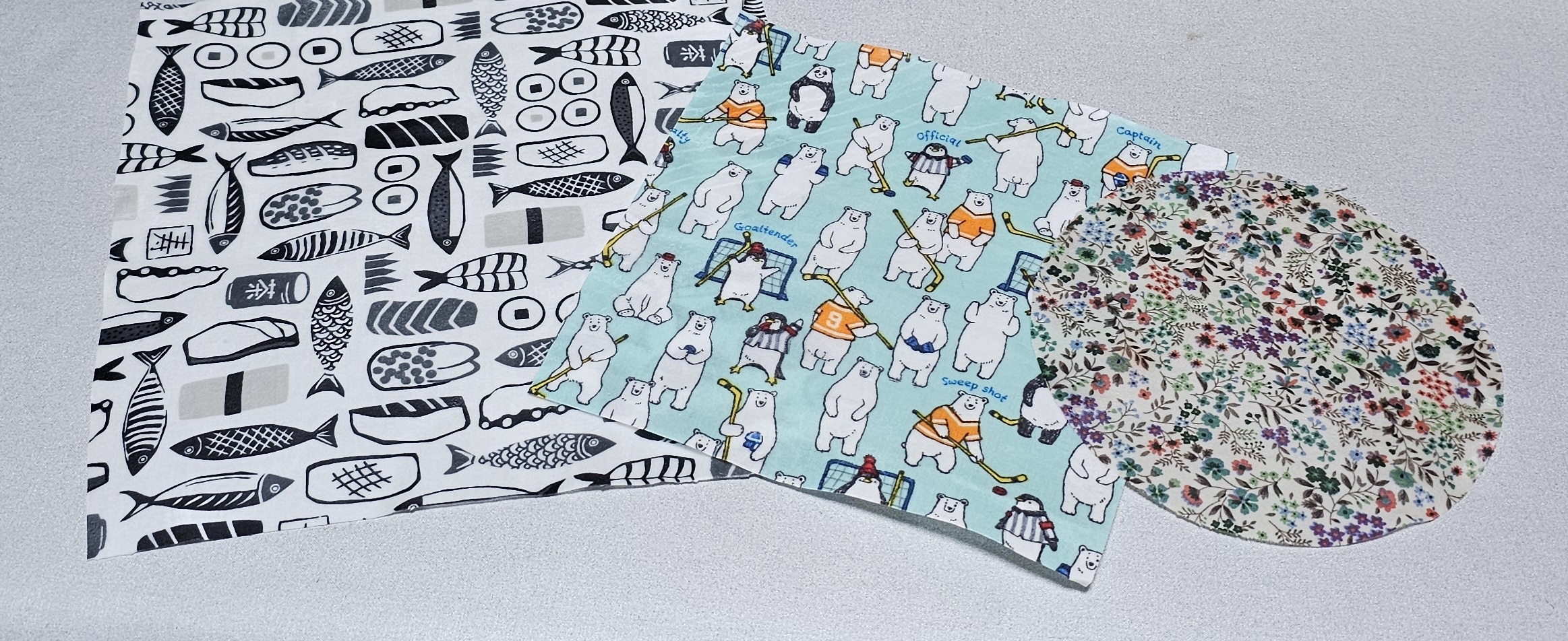 みつろうラップ50gで、パッチワーク用の100円で30cmx30くらいのハギレ布2枚いけます。