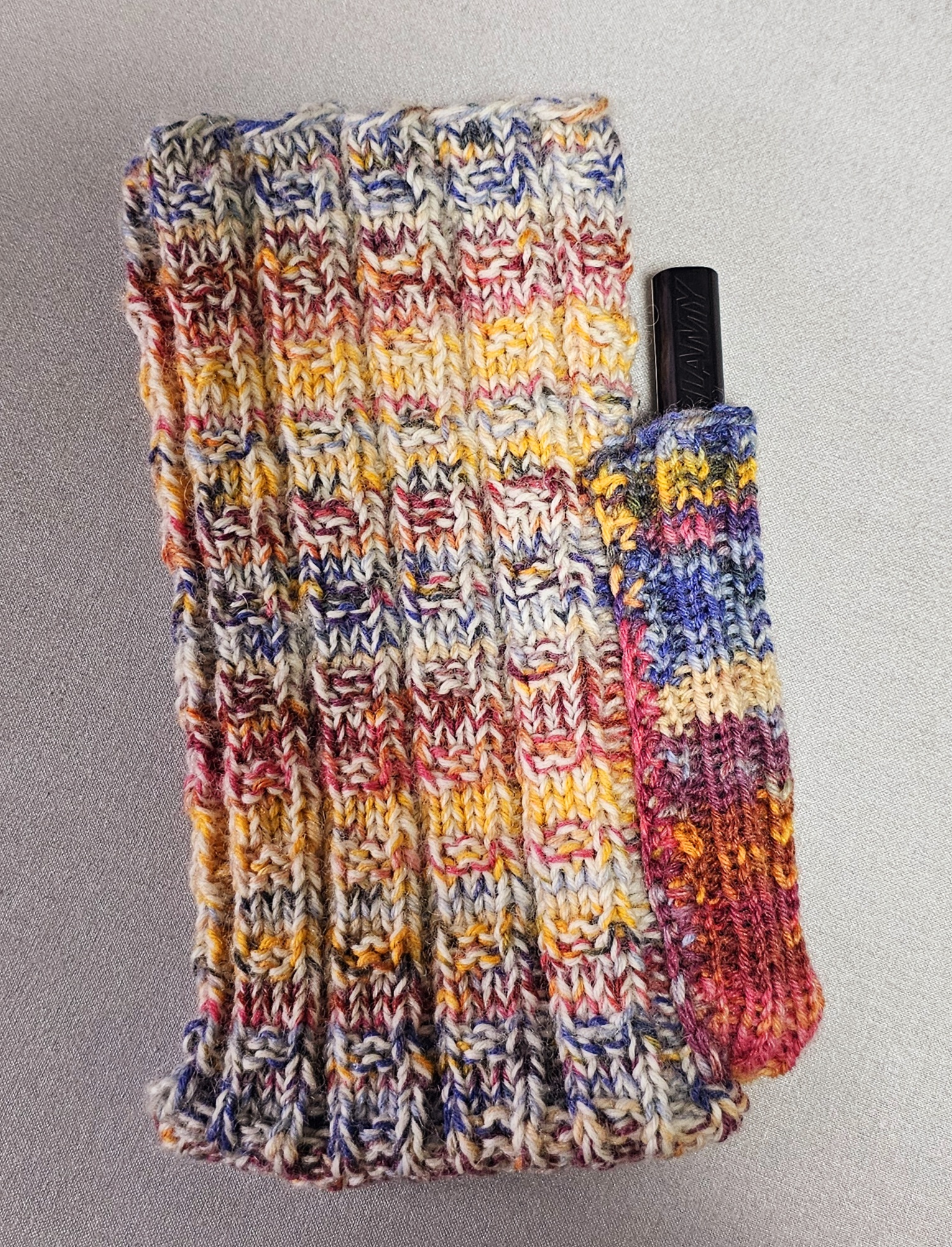でも、「ちょっと大きすぎるかな」と思って買ったケースにギッチギチのギリギリ収まった、ってのがちょっと…思ってたより毛糸が多い。