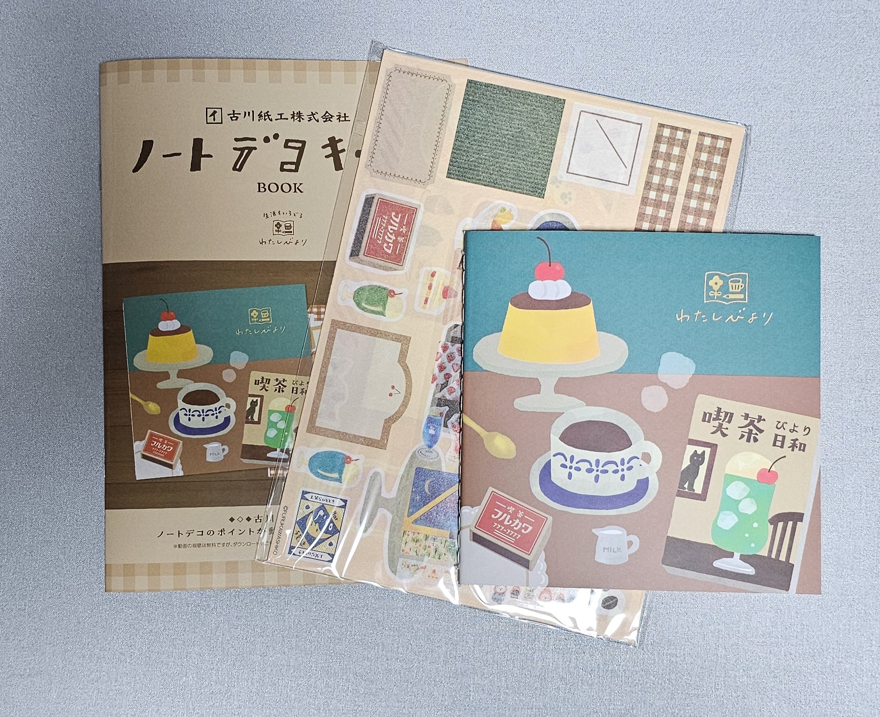 ノートとデコ素材(和紙にイラスト印刷したものとシール)がついてるセット