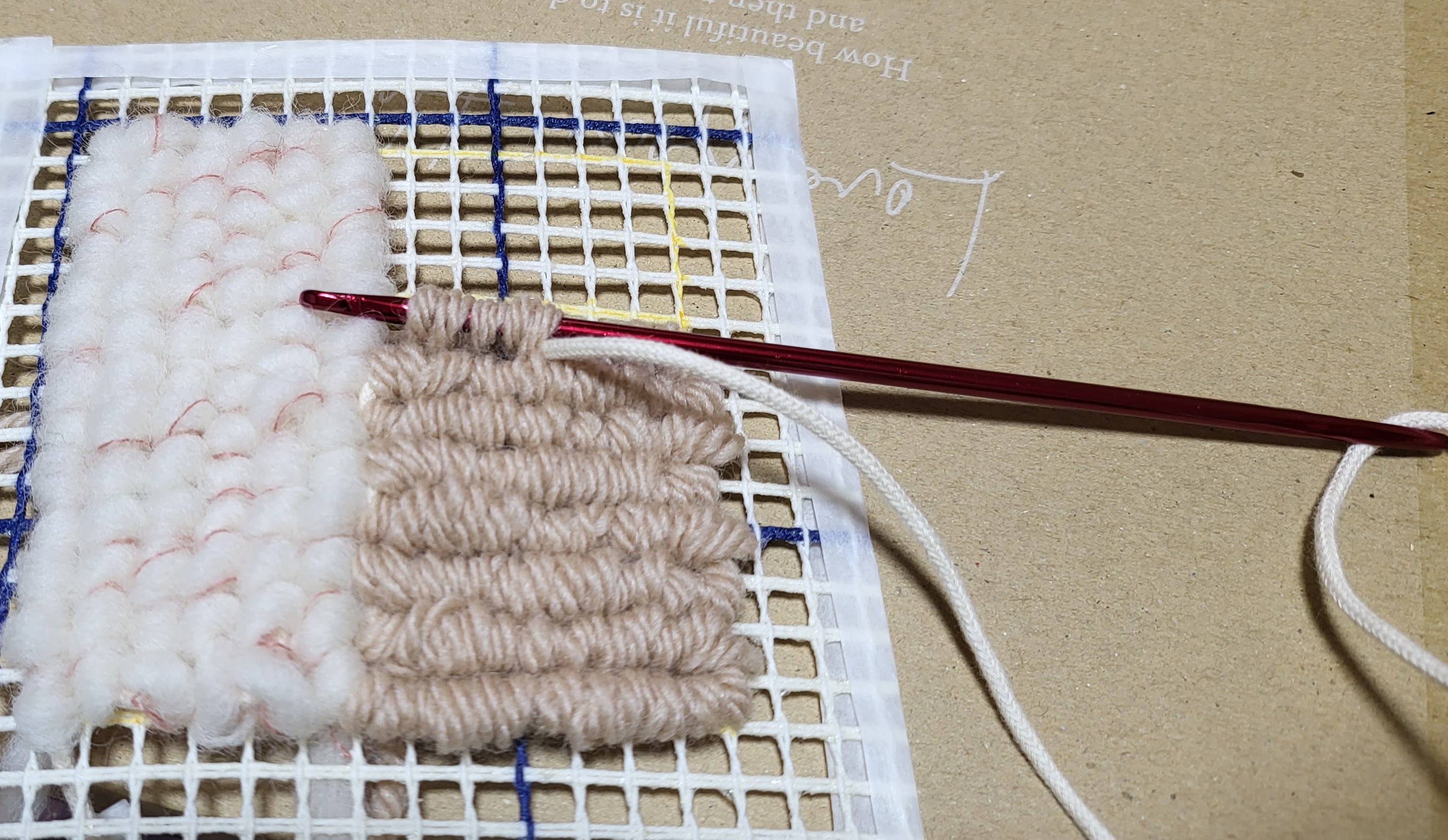 生きてる Craftie 10月号ロッカーフッキング 網になんかこう、太い毛糸を編んでいく感じのもの何になるかというと、壁に飾るらしい。職場のデスクに置くか…二種類作れるうちの小さくて簡単な方に挑戦中。レシピには「1時間から1時間半でできますよ」と書いていたので、「そうそう、そんくらいの時間が週末創作には丁度いいんですよ」と始めてみたのですが、既に2時間過ぎました。できてません…9月のマーブリングは積んでるんですが、来月スキップしたのでまあそのうちやります!(来月はクリスマスキャンドルだった。ろうそく使わないからね…)#Craftie 2023/10/01 Sun (2年以上前) No.678 編集 削除