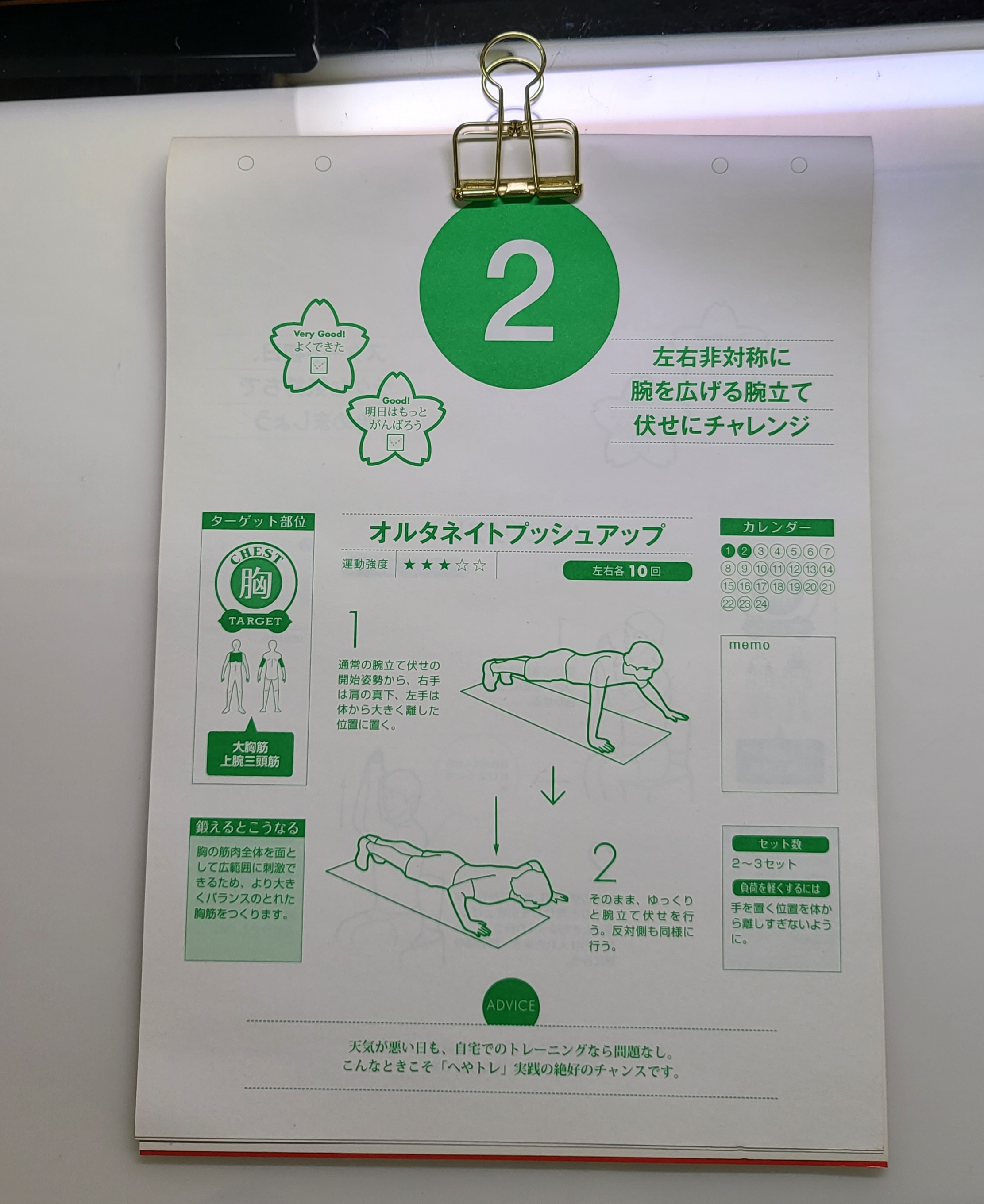 生きてる 思い出しました。筋トレ毎日やろうと思って、「日めくり筋トレ」みたいなのやろうとして、2日目で挫折したんですよつい最近普通の腕立て伏せもできないってのに、こんな高レベルがたったの二日目でッ… 2023/05/27 Sat (2年以上前) No.294 編集 削除