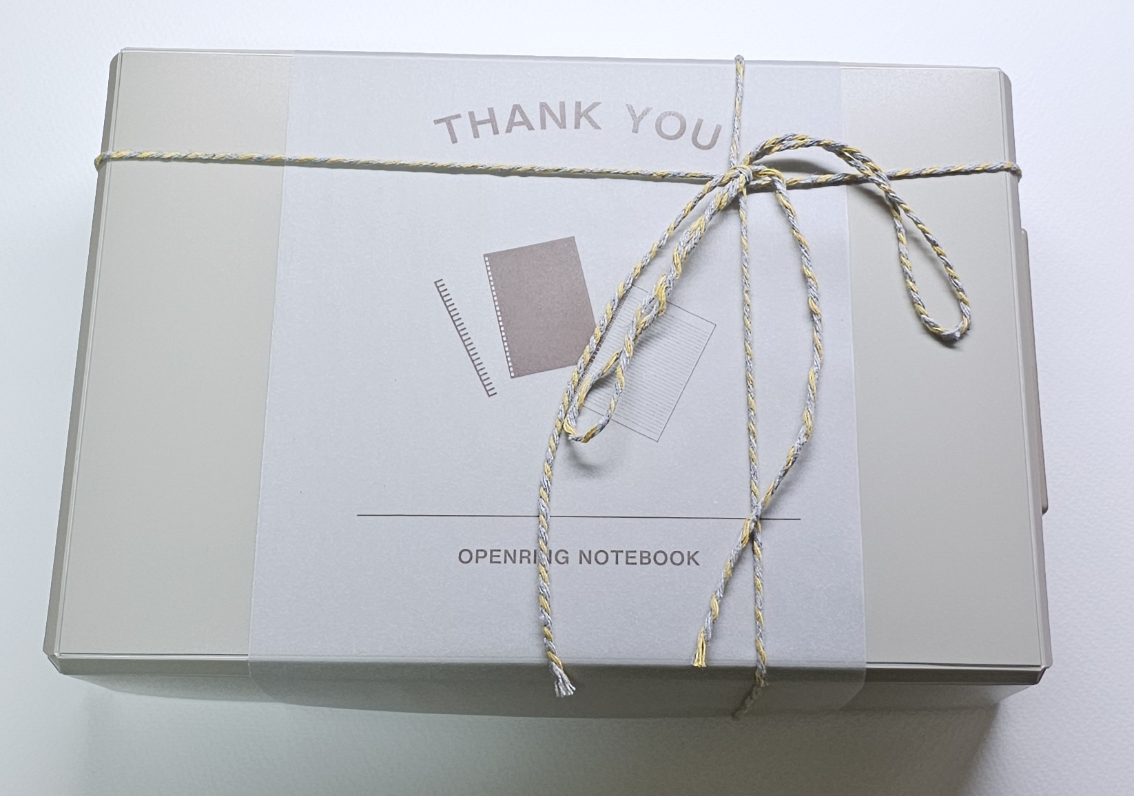 内容は、オープンリングノート(厚とじ)とゴムバンド下敷きが入ってるのは確定で、あとはお楽しみとのこと。