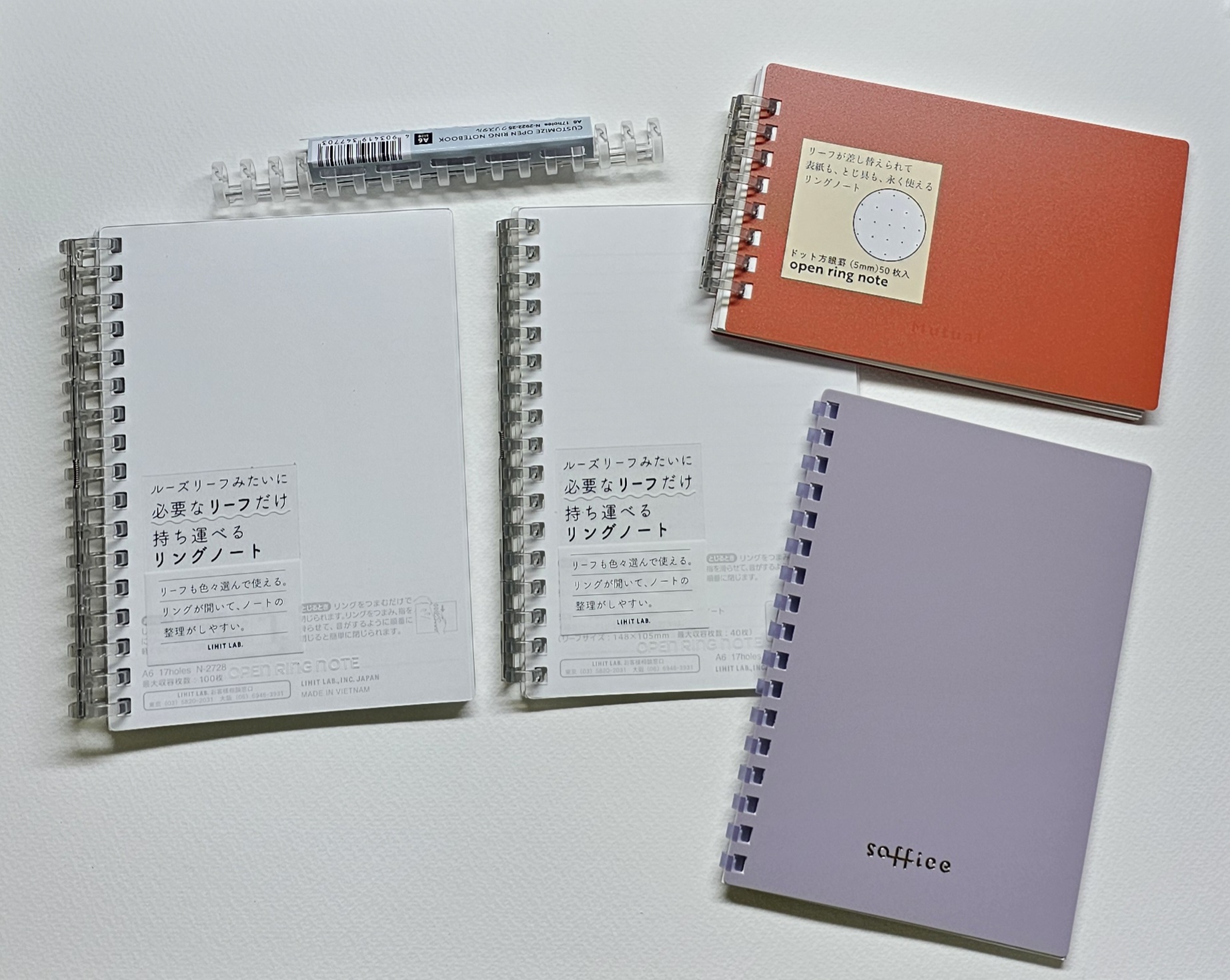 紫のはただのソフトリングノートだけど(紙の差し替えできない)、そもこのサイズ(A6)のノートこんなにあってどないすんねん(夢が広がりますね)