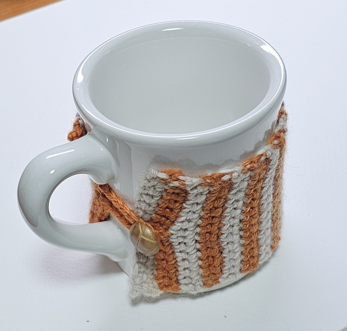 つくる フェリシモ「ゆっくりじっくりマイペースでレッスンかぎ針編み はじめてさんのきほんのき の会」の1回目カップコージー編めました べつに使わないな…猫舌気味だし…#編み物 2025/04/15 Tue (273日前) No.1613 編集 削除